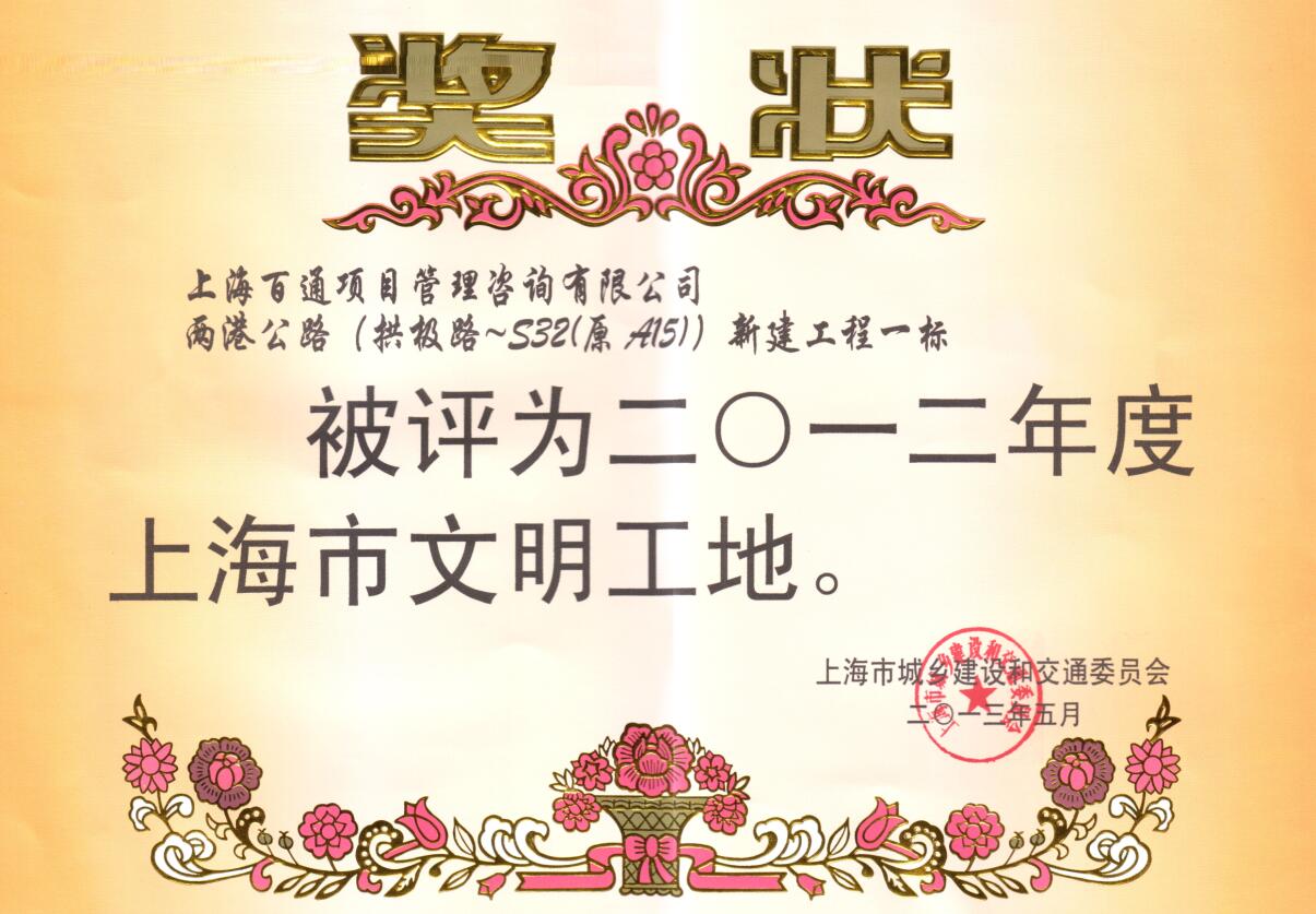 2012年度文明工地-两港公路(拱极路-S32(原A15)新建工程一标
