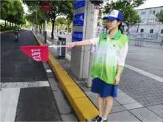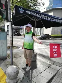 8月的氣候烈日炎炎,但在浦東世紀大道向城路口,有一批身穿志愿者馬甲、手拿小紅旗、頭戴“上海百通”帽子的交通文明志愿者正在堅守崗位,勸導過往車輛和路人文明出行,不亂穿馬路,為車水馬龍的城市交通早高峰保駕護航。