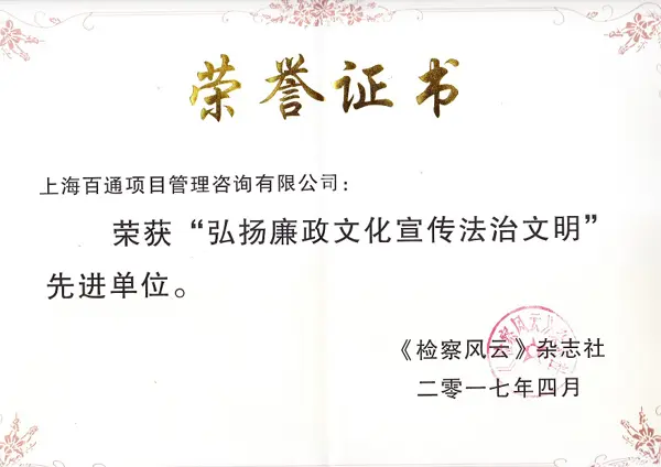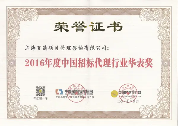 近日捷報頻傳,因我司在行業專業領域內的深耕細作、精益求精,近期先后榮獲中國采購與招標網、中國名企排行網聯合評比表彰的2016年度“中國招標代理行業華表獎”、“中國最具競爭力招標代理機構百強”稱號;浦東新區重大工程建設指揮部授予的2016年度“上海市浦東新區重點工程實事立功競賽優秀公司”稱號;《檢察風云》雜志社評選表彰的“弘揚廉政文化宣傳法治文明先進單位”稱號。