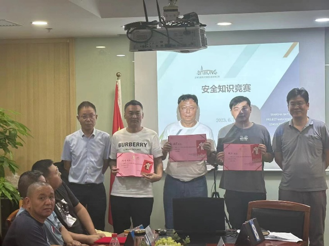 2023年6月是我國第22個“安全生產(chǎn)月”,今年安全生產(chǎn)月主題是“人人講安全,個個會應(yīng)急”。為響應(yīng)“安全生產(chǎn)月”活動,我司監(jiān)理板塊成立了“安全生產(chǎn)月”活動小組,并安排各部門、各項目監(jiān)理組積極組織相關(guān)活動。經(jīng)板塊總工辦、工程部、辦公室等各部門精心籌備,6月28日下午1點,百通監(jiān)理板塊“安全知識競賽“在公司向城路1號會議室舉行。活動開始前,板塊副總經(jīng)理楊曉明首先傳達(dá)監(jiān)理板塊安全生產(chǎn)活動的精神,并對本次比賽作了精彩激昂的動員講話,參賽隊員精神為之振奮。競賽期間,現(xiàn)場氣氛緊張激烈、掌聲此起彼伏,選手們熟練地運(yùn)用所掌握的危大工程、消防及職業(yè)健康等安全知識,充分展示了安全生產(chǎn)技能。本次安全知識競賽的試題囊括了建設(shè)行業(yè)最新的規(guī)范及主管部門要求,結(jié)合行業(yè)內(nèi)安全管理的重點環(huán)節(jié)及常見案例,通過必答題,選答題、搶答題三個環(huán)節(jié)的緊張角逐,最后產(chǎn)生一、二、三等獎各三名選手,并由板塊領(lǐng)導(dǎo)向獲獎選手頒發(fā)榮譽(yù)證書和獎金。在答題過程中,總工辦對問題進(jìn)行詳細(xì)解答和分析,所有參加人員一起重新學(xué)習(xí)了安全生產(chǎn)各項必備知識,寓教于樂,真正做到了“以賽促學(xué),強(qiáng)意識,以學(xué)促行抓安全”。