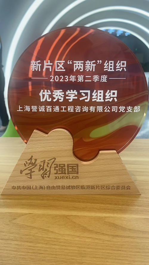 為深入學(xué)習(xí)貫徹習(xí)近平新時(shí)代中國(guó)特色社會(huì)主義思想教育,扎實(shí)推進(jìn)“兩新”黨組織黨建工作,8月2日,臨港新片區(qū)綜合黨委在臨港中心召開(kāi)了2023半年度新片區(qū)“兩新”組織黨建工作會(huì)議。會(huì)上,我司子公司上海譽(yù)誠(chéng)百通工程咨詢有限公司黨支部榮獲新片區(qū)“兩新”組織2023年第二季度學(xué)習(xí)強(qiáng)國(guó)“優(yōu)秀學(xué)習(xí)組織”榮譽(yù)稱號(hào)。