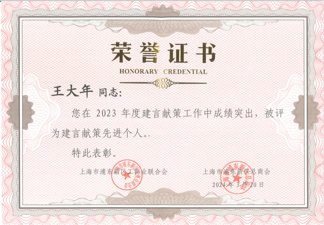 3月20日下午,王大年董事長參加了浦東新區(qū)工商聯(lián)(總商會(huì))七屆四次執(zhí)委(理事)會(huì)暨“稅惠春雨潤民企,智關(guān)東風(fēng)促騰飛”服務(wù)民營經(jīng)濟(jì)高質(zhì)量發(fā)展主題活動(dòng)。活動(dòng)中,我司蟬聯(lián)浦東新區(qū)光彩事業(yè)促進(jìn)會(huì)授予的“光彩之星”榮譽(yù)稱號(hào)、王大年董事長榮獲浦東新區(qū)工商聯(lián)、總商會(huì)頒發(fā)的2023年度建言獻(xiàn)策“先進(jìn)個(gè)人”榮譽(yù)稱號(hào)。