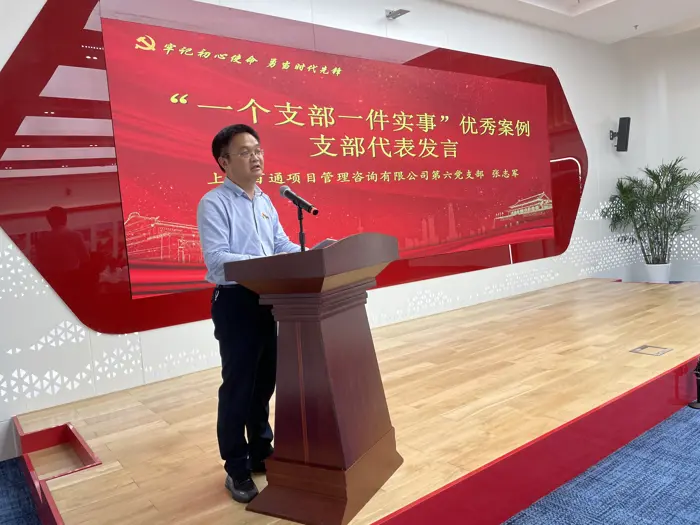 第六黨支部書記張志軍同志作為“一個支部一件實事”優秀案例代表上臺發言,以支部黨員群策群力,在“六一”前夕組織部分黨員和入黨積極分子前往上海市兒童福利院,給孩子們送去了夏季驅蚊用品、夏季涼被、積木、牛奶等一大批生活物資,受到了上海市兒童福利院的熱誠歡迎和高度評價為事例,講述了作為百通黨委里最晚組建,也是最年輕的支部,自成立以來在綜合黨委和百通黨委的堅強領導下,圍繞促進企業持續發展,不斷加強班子建設、抓好黨員教育管理;全體黨員牢固樹立“四個意識”、堅定“四個自信”、做到“兩個維護”,支部班子團結有力;在主題教育和黨紀學習教育實踐中,黨員們堅持以學促干、以干促學,深化“黨員先鋒行動”,引導黨員立足崗位創優爭先,積極開展服務群眾活動等方面的成果。