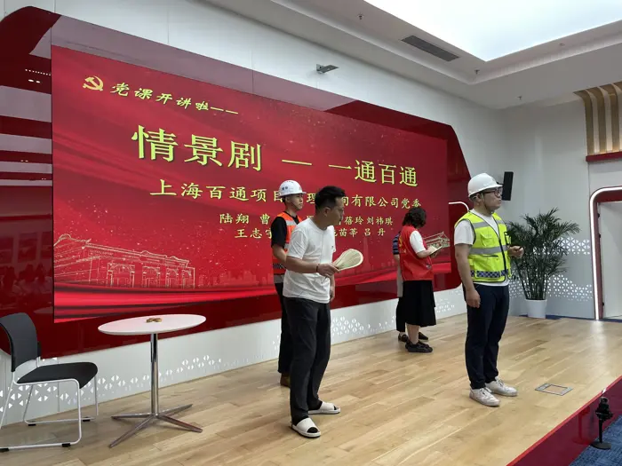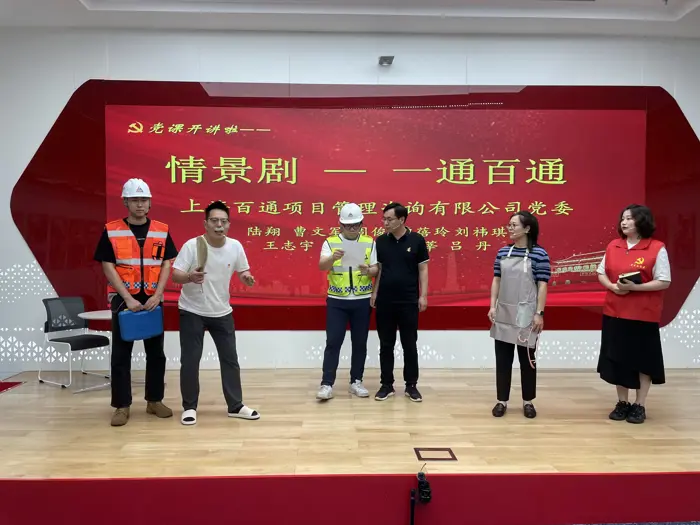 在“黨課開講啦”環節,公司五大業務板塊和各職能部門黨團員、業務骨干、青年職工成功展演了情景劇《一通百通》。故事講述了百通監理從業者深度踐行“人民城市人民建,人民城市為人民”理念,以“城市更新工程”為主線,在幸福小區“美麗家園”升級改造中,在施工質量監管、反腐倡廉行動、為群眾排憂解難等方面的事跡,展現了百通員工以老帶新傳承精神、愛崗敬業不斷攻堅的風采風貌。演員們幽默詼諧的對話、活靈活現的表演將小區舊改場景搬上了舞臺,在讓現場觀眾捧腹大笑的同時,也了解到了以“百通監理”為縮影的廣大城市更新建設者對工作認真負責、對居民耐心溝通、對難題盡力破解的各種狀況,受到了現場觀眾的一致歡迎和鼓掌喝彩。