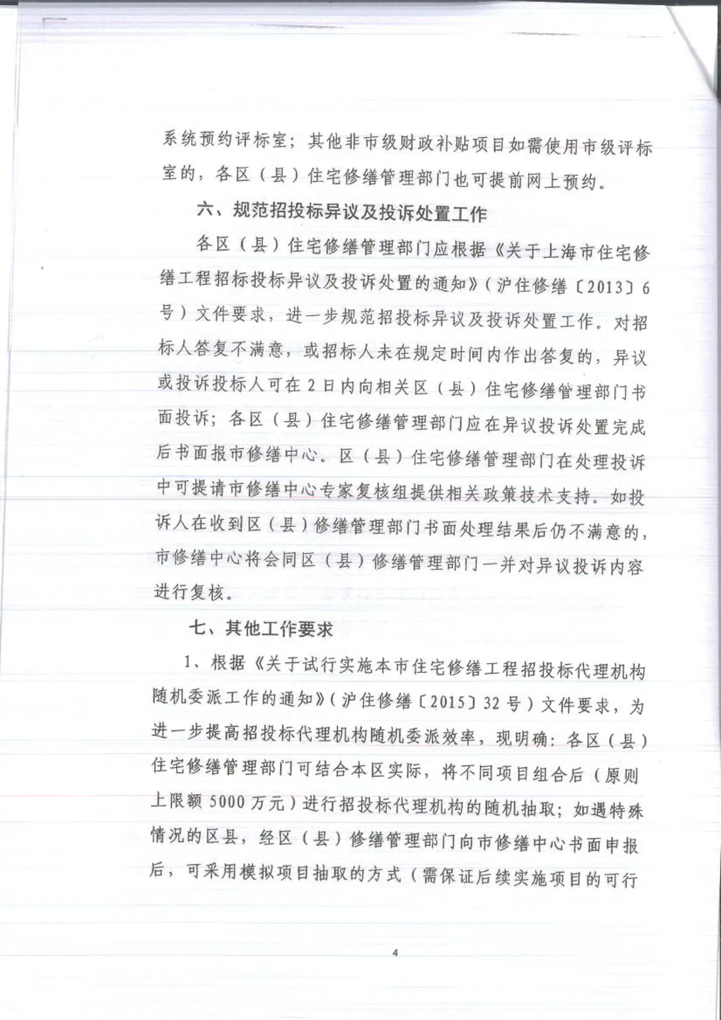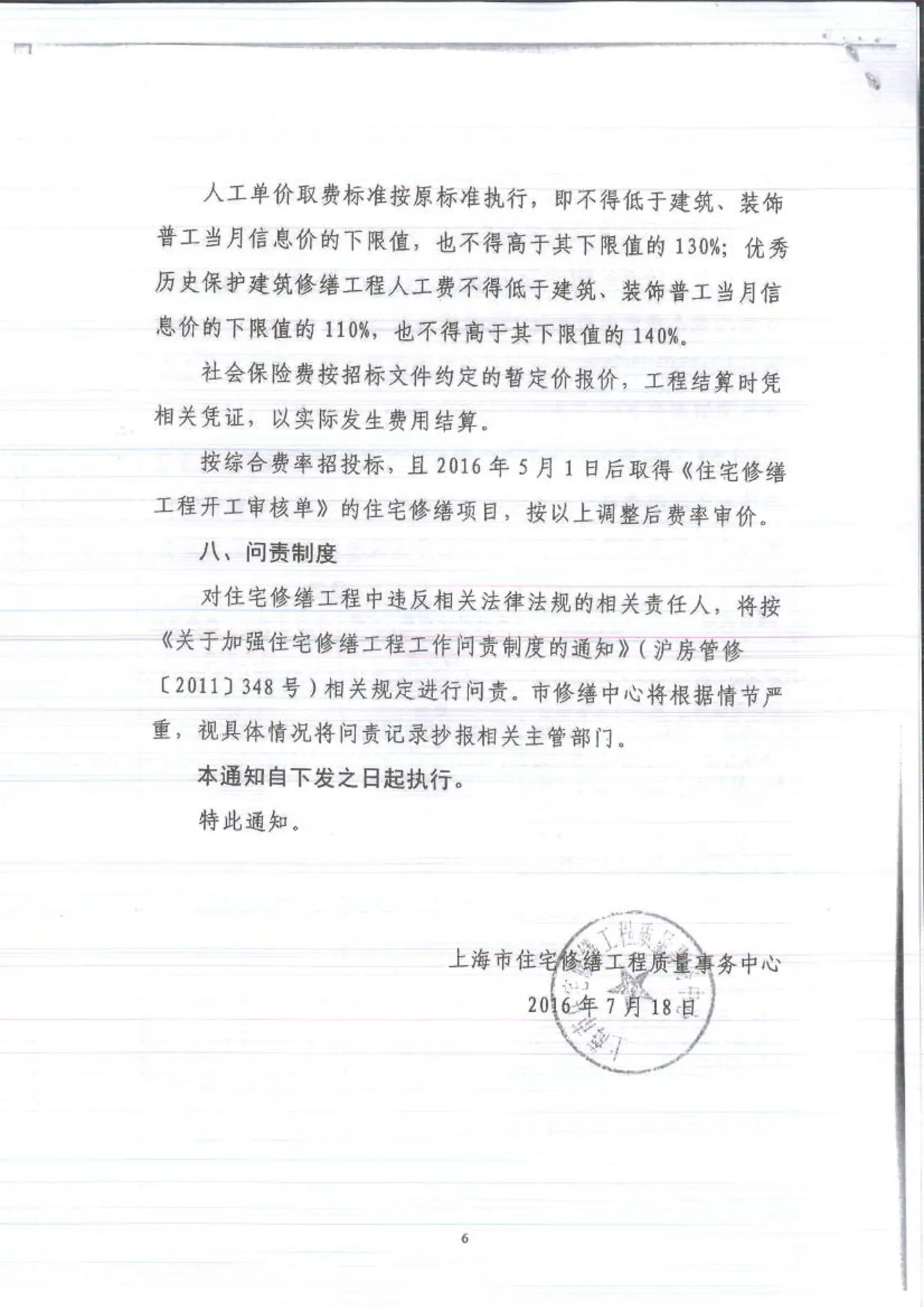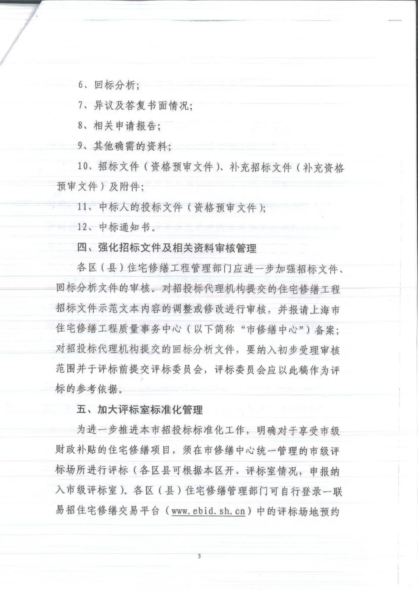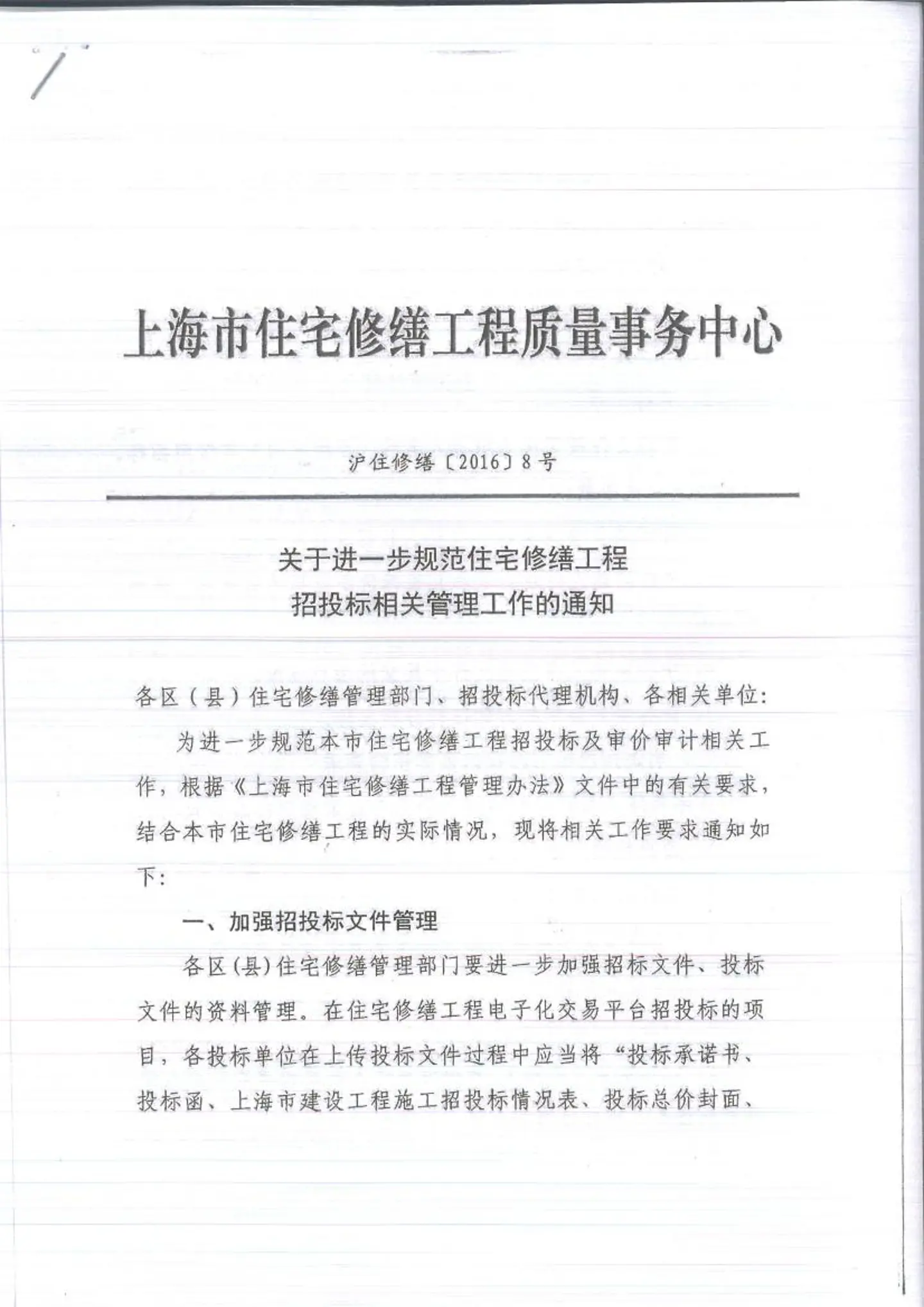 关于进一步规范住宅修缮工程招投标相关管理工作的(沪住修缮[2016]8号)