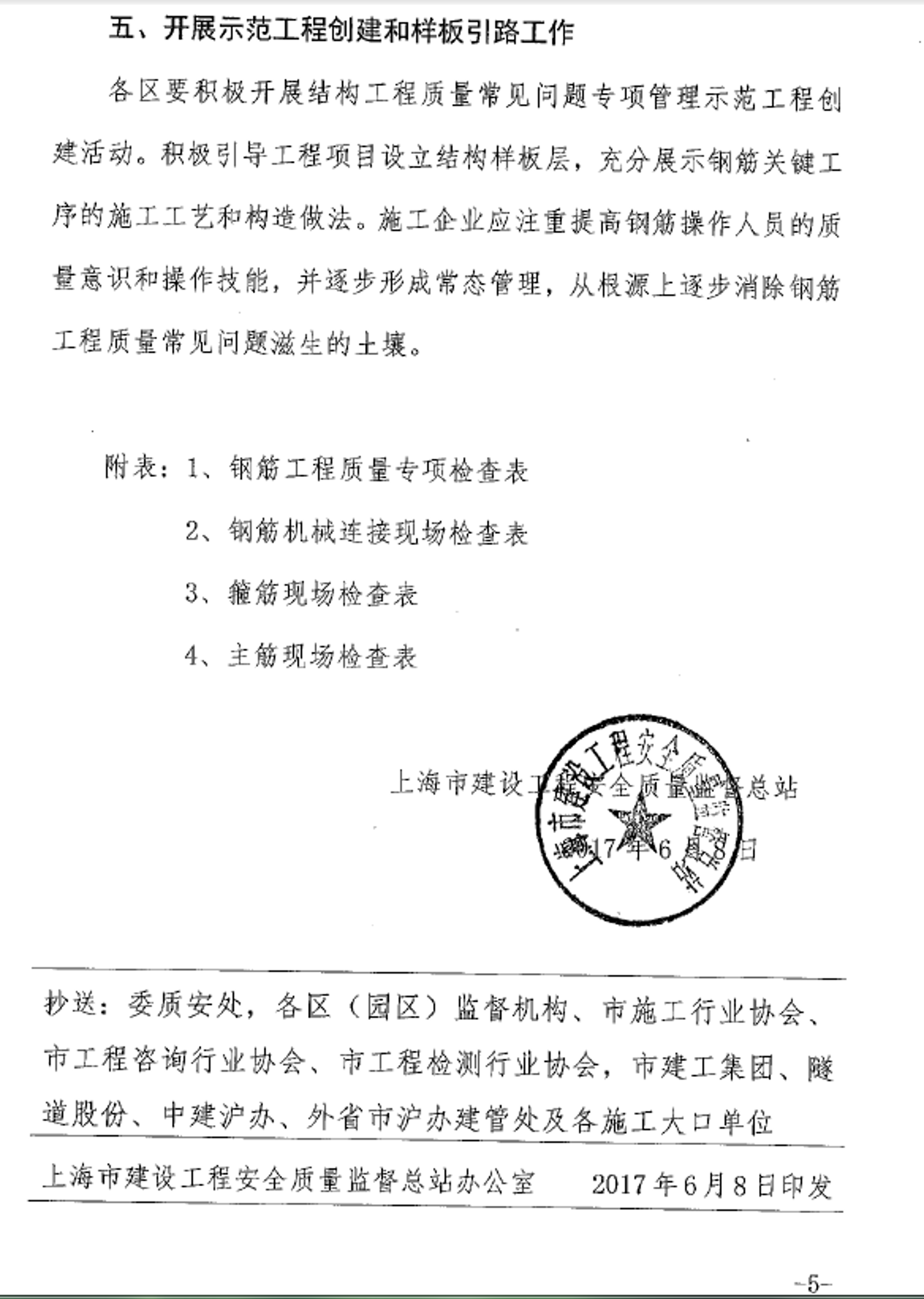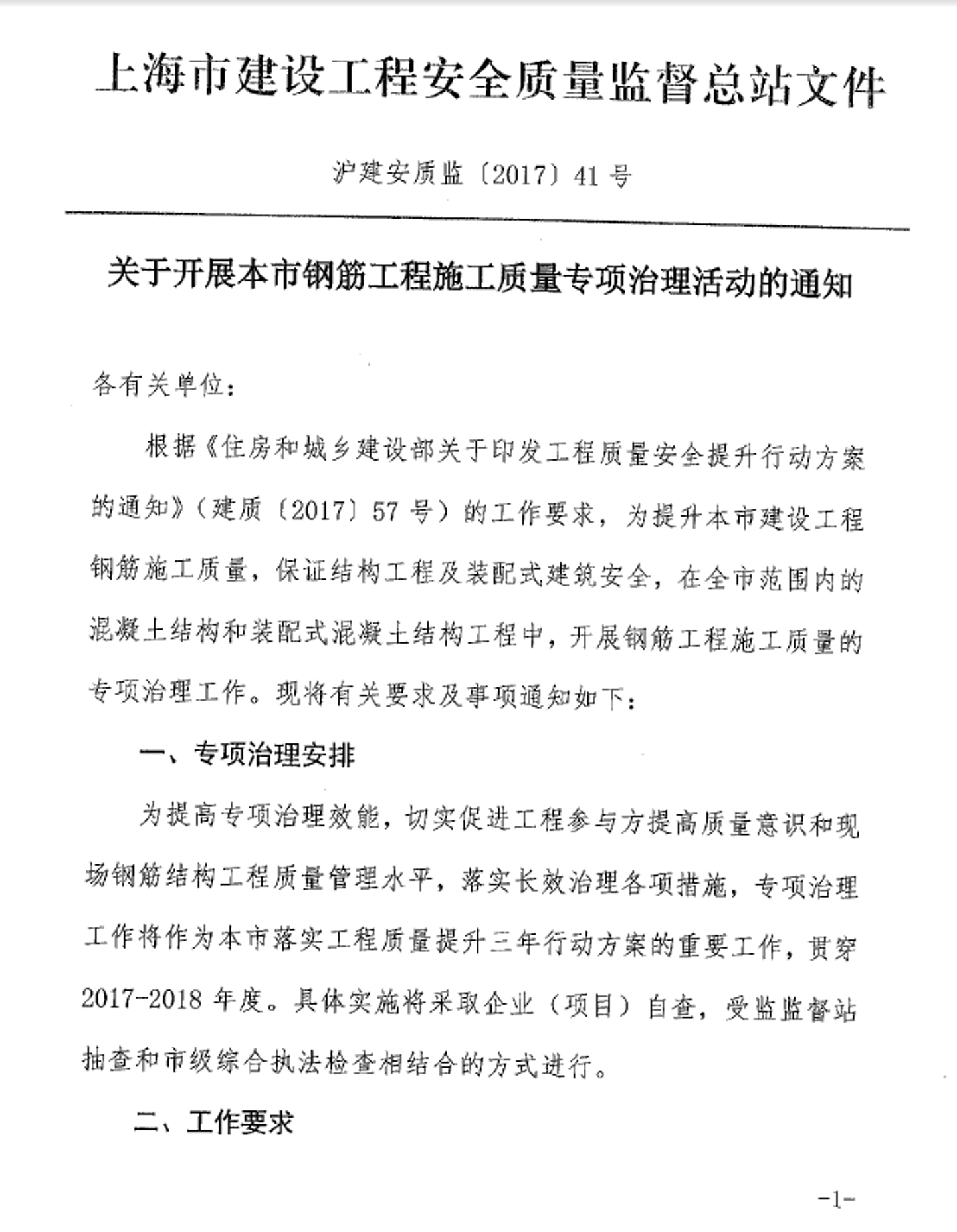 [市质监总站]关于开展本市钢筋工程施工质量专项治理活动的通知【沪建安质监[2017]41号】