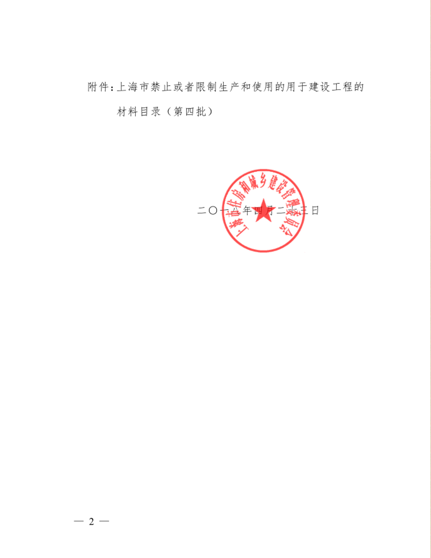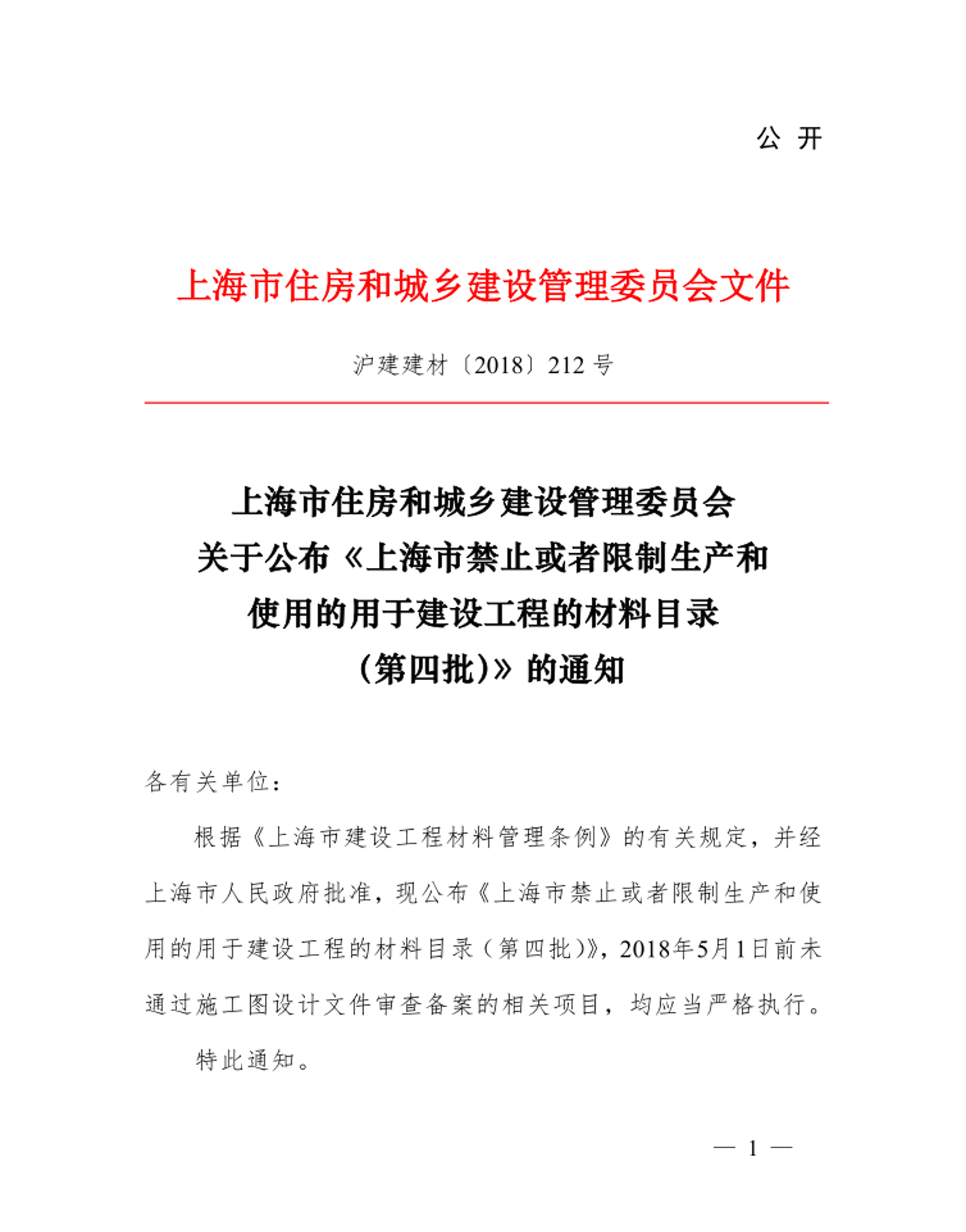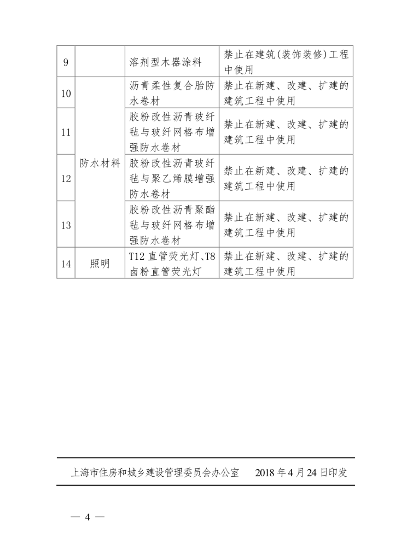 [市住建委]关于公布《上海市禁止或者限制生产和使用的用于建设工程的材料目录(第四批)》的通知【沪建建材〔2018〕212号】