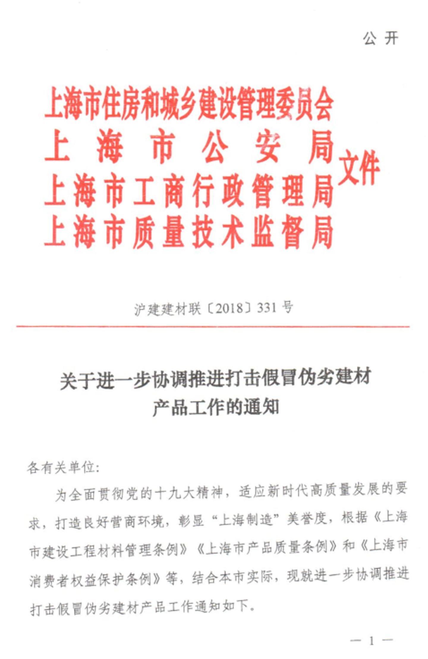 [市住建委]关于进一步协调推进打击假冒伪劣建材产品工作的通知【沪建建材联[2018]331号】