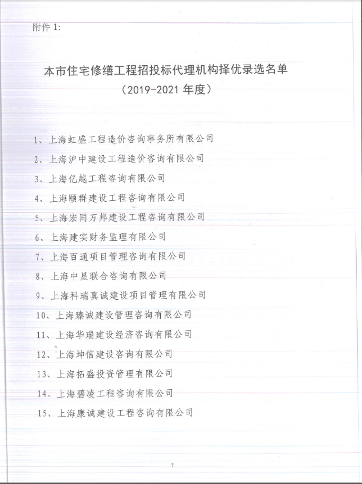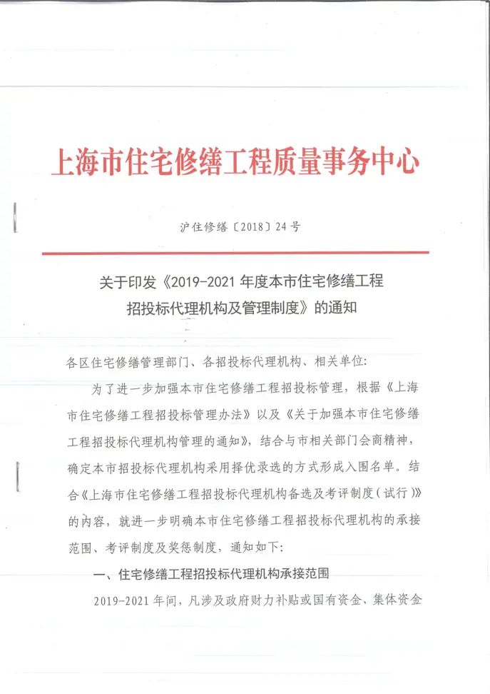 2019-2020年度本市住宅修缮工程招标代理机构及管理制度(沪住修缮〔2018〕24号)