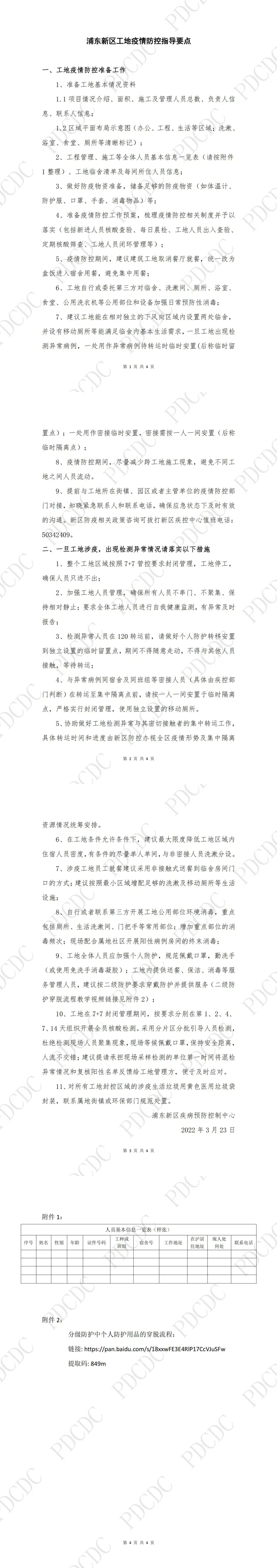 浦东新区工地疫情防控指导要点