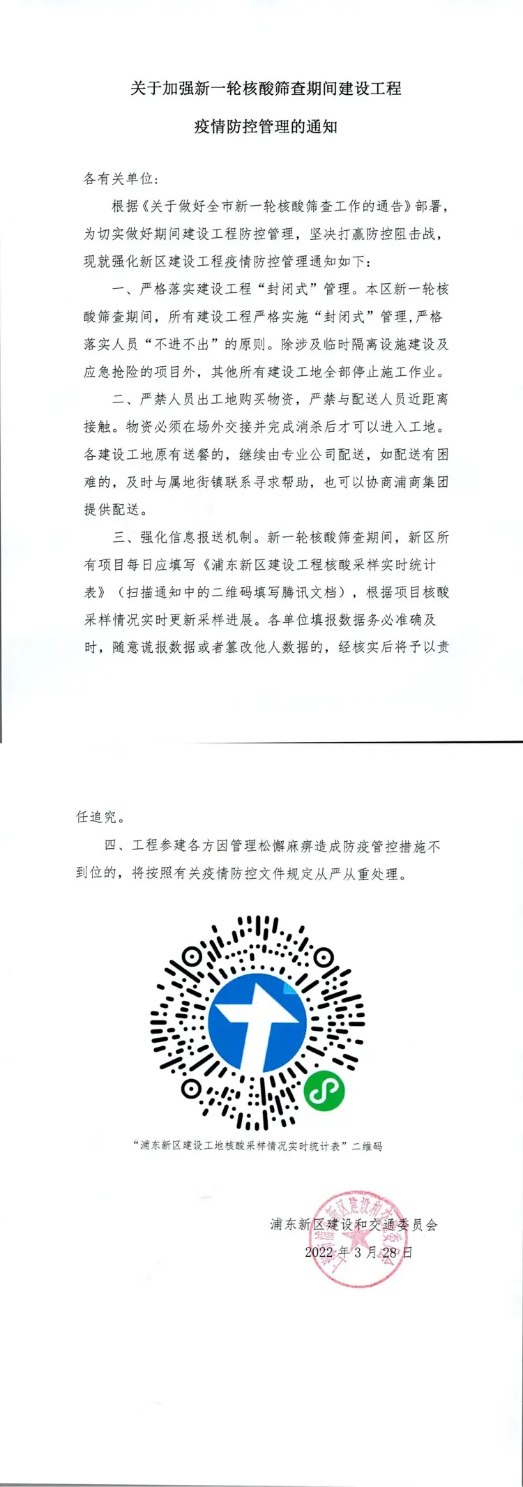 关于加强新一轮核酸筛查期间建设工程疫情防控管理的通知