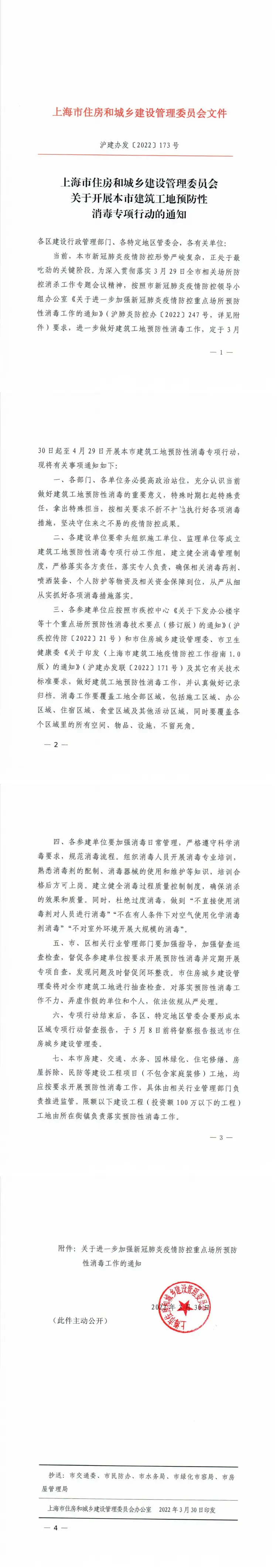 沪建办发【2022】173号《关于开展本市建筑工地预防性消毒专项行动的通知》