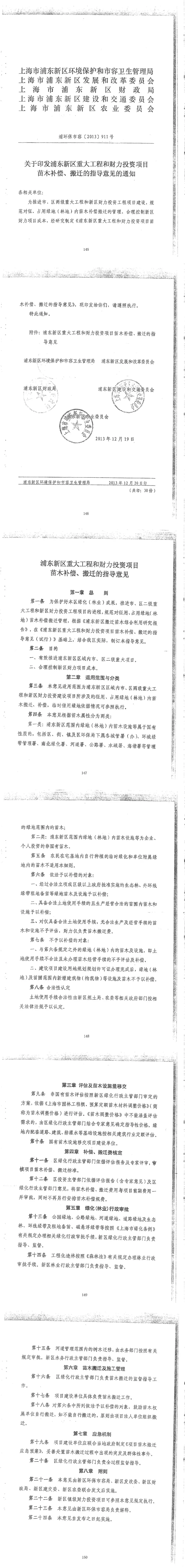 关于印发浦东新区重大工程和财力投资项目苗木补偿、搬迁的指导意见的通知【浦环保市容〔2013〕911号】
