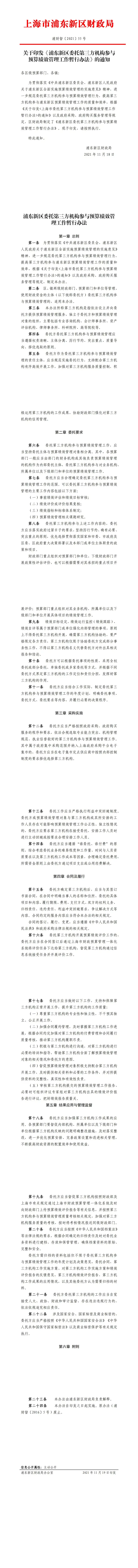 关于印发《浦东新区委托第三方机构参与预算绩效管理工作暂行办法》的通知【浦财督〔2021〕55号】