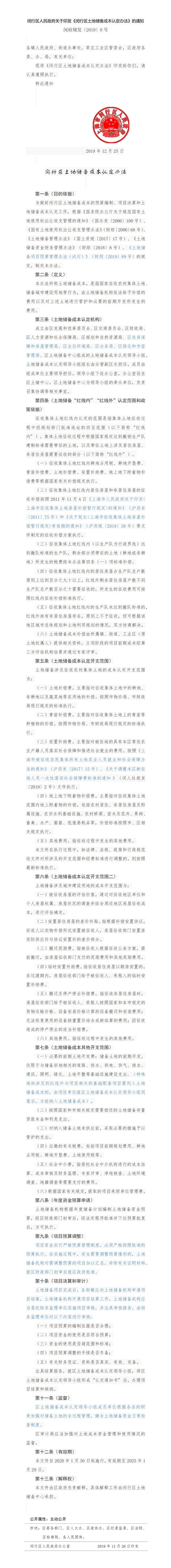 [闵行]关于印发《闵行区土地储备成本认定办法》的通知【闵府规发〔2019〕8号】