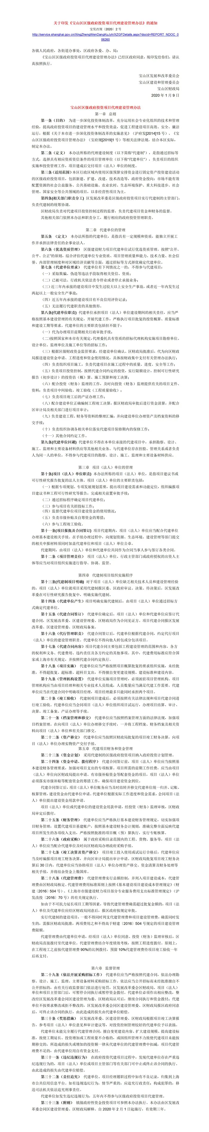 [宝山]关于印发《宝山区区级政府投资项目代理建设管理办法》的通知【宝发改规〔2020〕2号】
