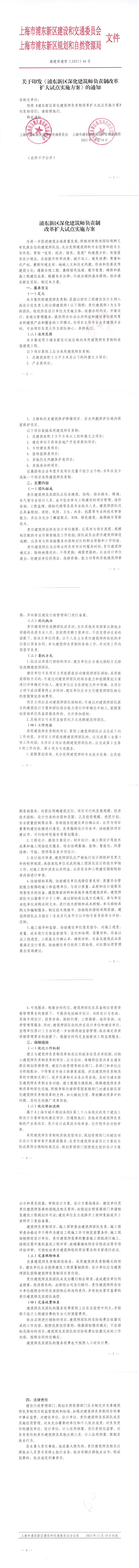 [浦东]关于印发《浦东新区深化建筑师负责制改革扩大试点实施方案》的通知【浦建委建管E2023〕46号】
